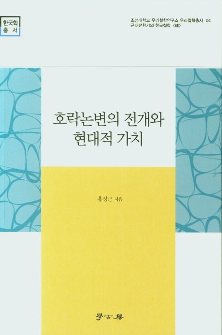 호락논변의 전개와 현대적 가치 [우리철학, 어떻게 할 것인가? - 근대전환기 한국철학의 도전과 응전 - | 조선대학교]저자 : 홍정근 ... | 출판사 : 학고방 | 출판일 : 20201220호론과 낙론사이의 학술논변을 다루고 있다. 호락논변은 중국이나 일본 등 다른 전통 사회에서 찾아볼 수 없는 독자성이 강한 우리철학의 한 유형이다. 이 책은 호락논변 초기의 사상적 대립, 절충론의 등장, 실학에 끼친 영향 등을 서술하였고, 20세기 학자인 이철영의 사상을...