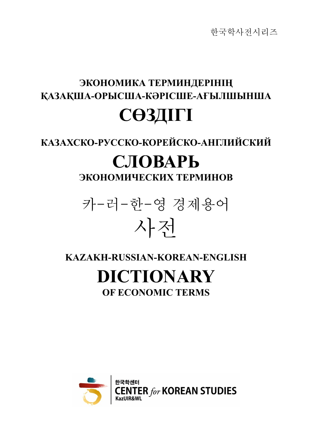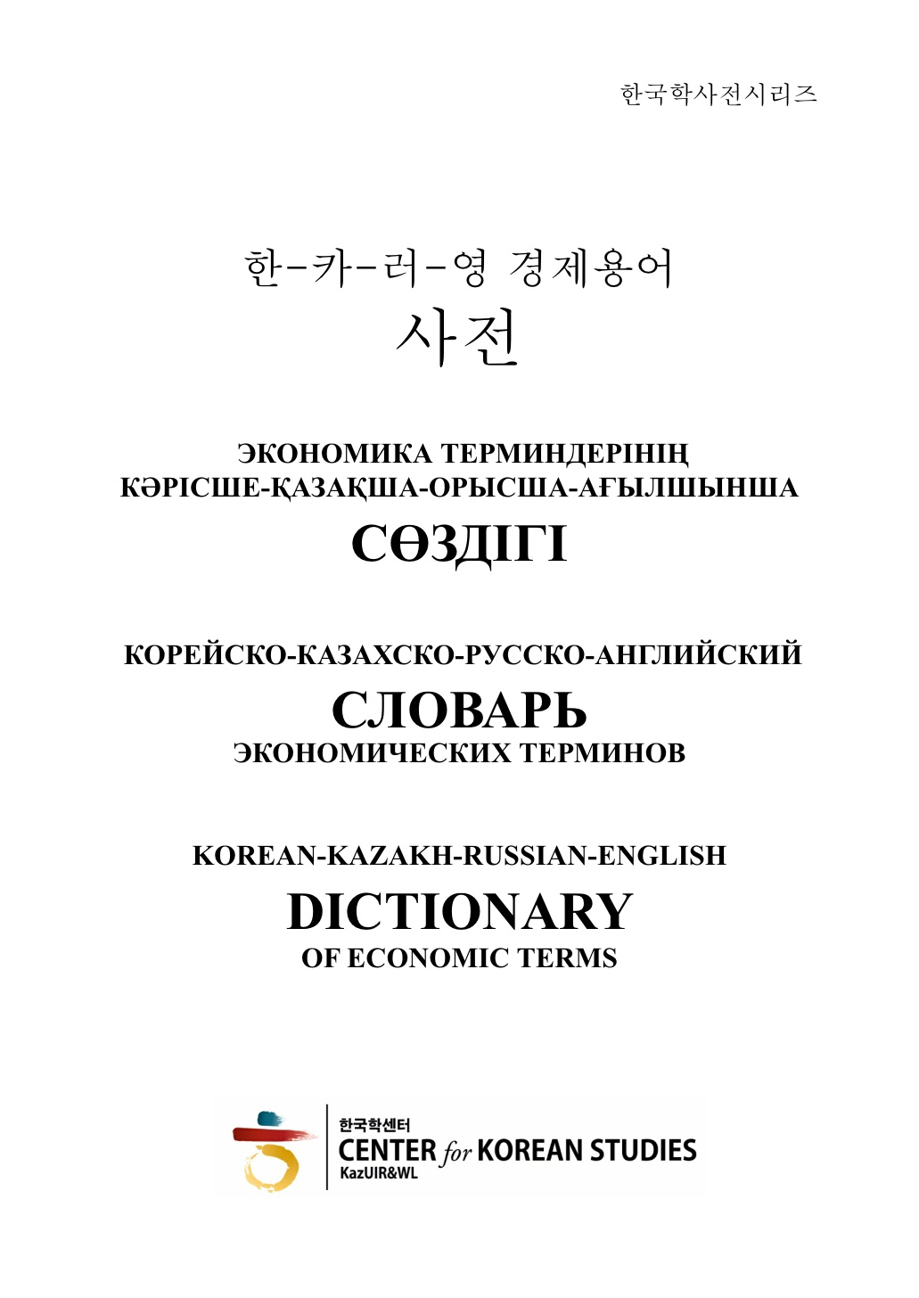 한-카-러-영 경제용어사전 [공존과 소통의 한국학: 중앙아시아 한국학의 가치 창출 | Kazakh Ablai Khan University of International Relations and World Languages]저자 : 박 넬리, 장호종 ... | 출판사 : 카자흐 국제관계 및 세계언어대 출판부 | 출판일 : 202012유형단행본한국어-카자흐어-러시아어-영어의 경제용어를 비교할 수 있도록 한 사전. 본교 중핵대학사업단이 사전개발에 참여하고, 중핵대학사업 예산 중 출판비, 편집비 사용. 중앙아시아 한국학네트워크를 활용하여 카자흐스탄의 다른 대학 및 러시아어를 기반으로 하는 지역에 PDF판을 배포...